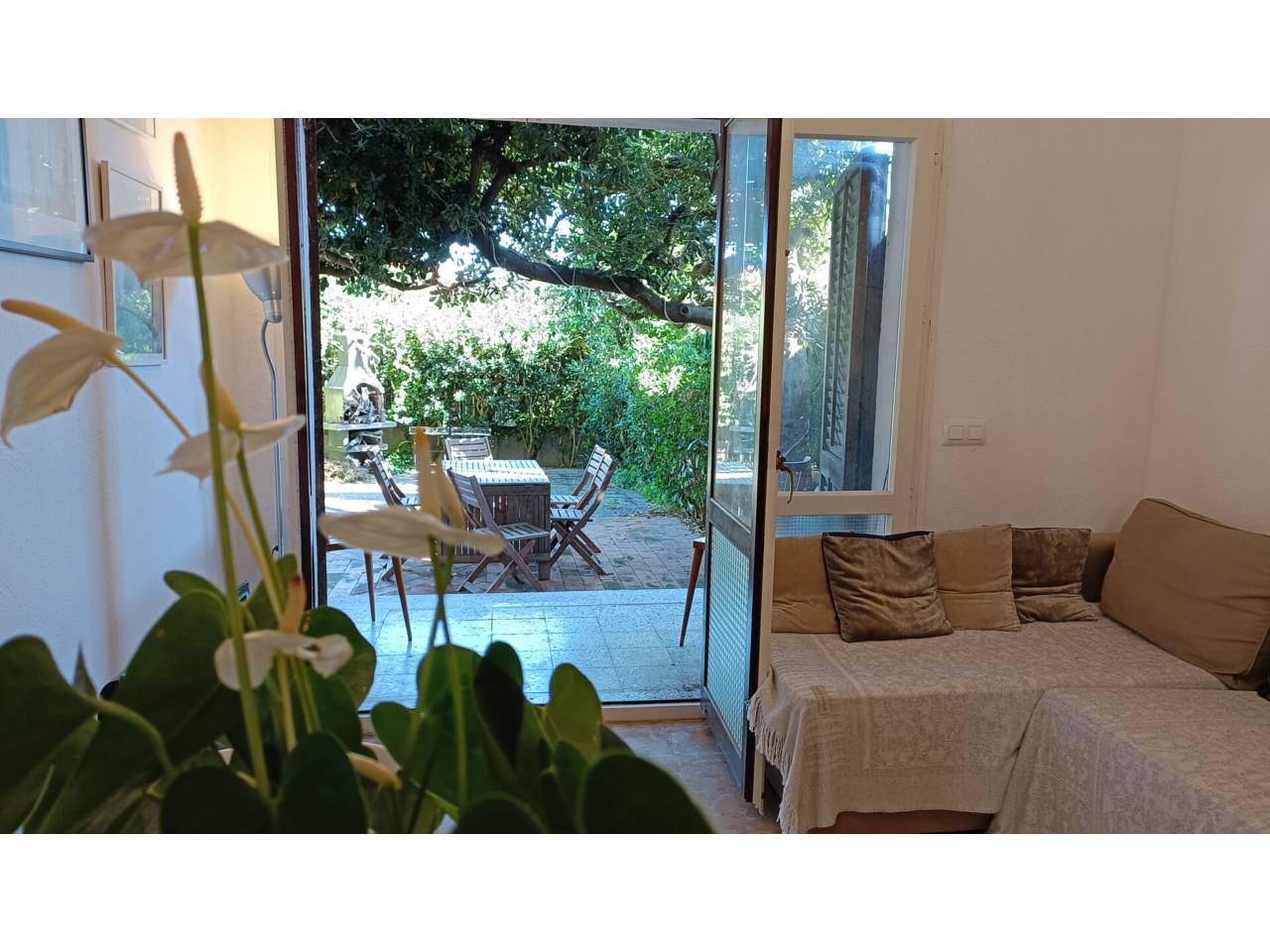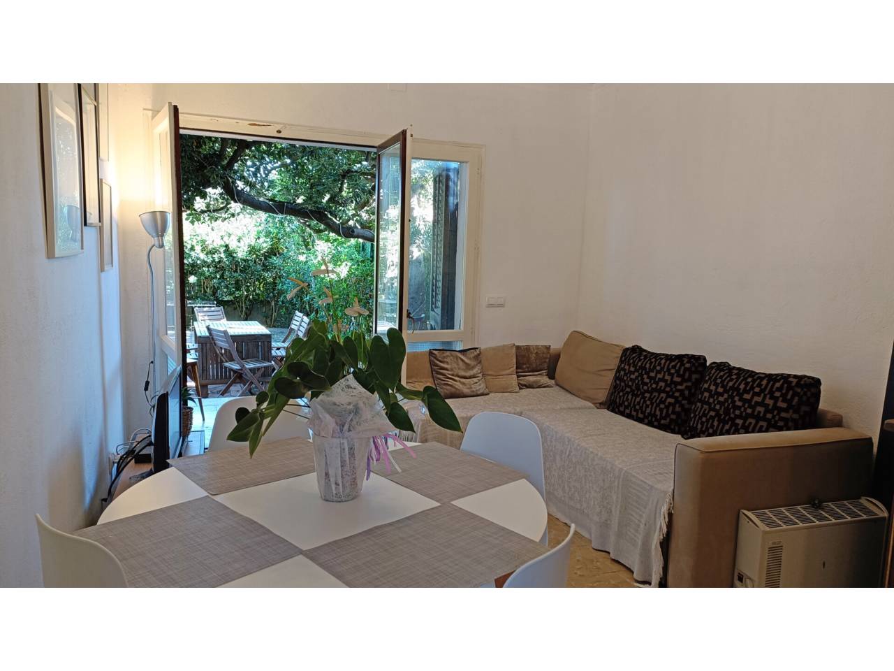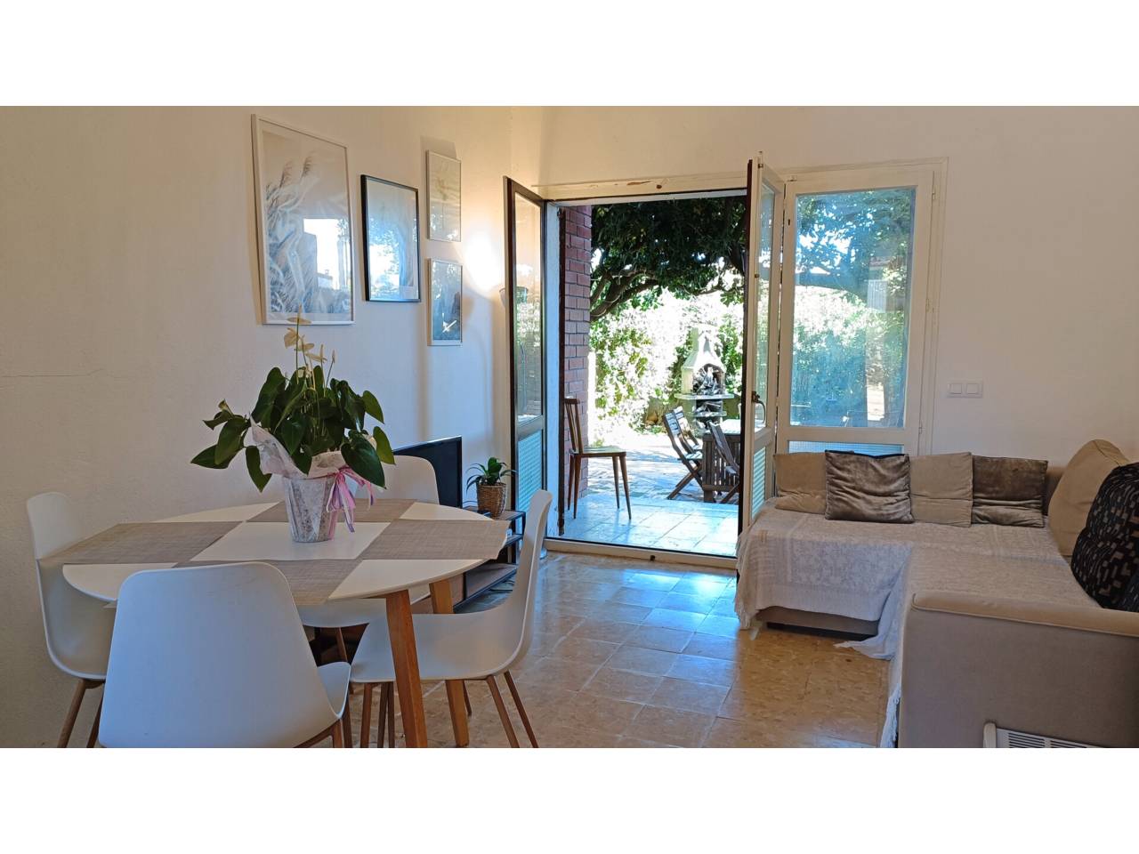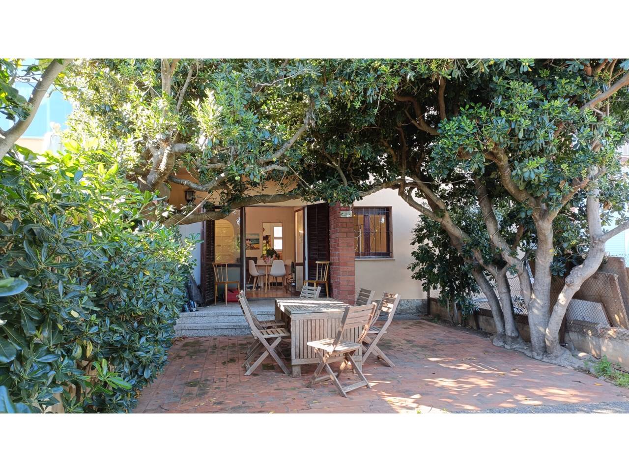 Planta baixa amb terrassa i un gran pati. És un apartament de 40m² repartits en una sala d’estar i menjador, una cuina independent, un dormitori doble amb un armari encastat i un bany amb dutxa renovat; a més a més té una terrassa de 6m² oberta a un gran pati amb zones de sol i ombra i una barbacoa d’obra.