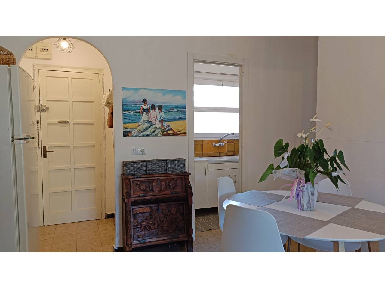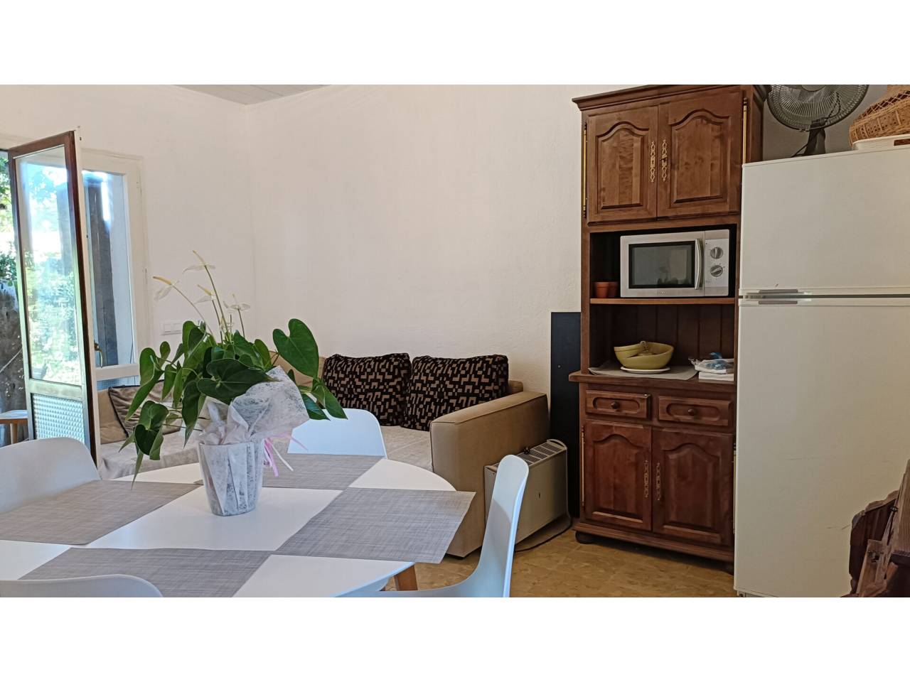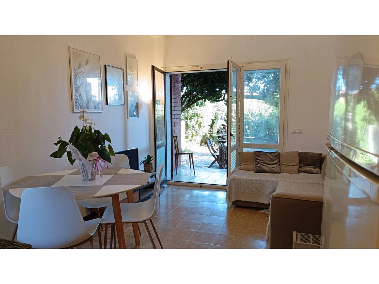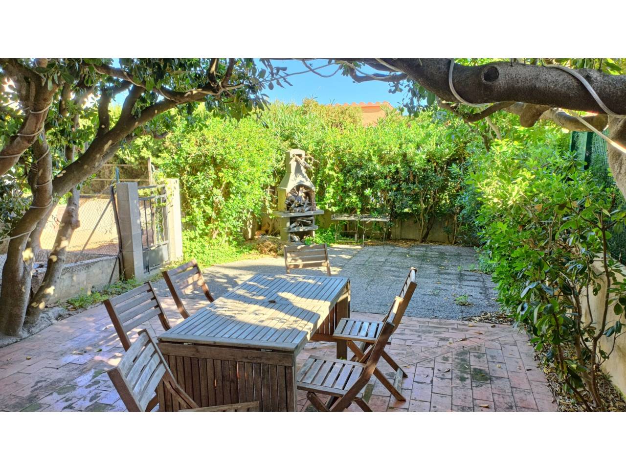 Planta baixa amb terrassa i un gran pati. És un apartament de 40m² repartits en una sala d’estar i menjador, una cuina independent, un dormitori doble amb un armari encastat i un bany amb dutxa renovat; a més a més té una terrassa de 6m² oberta a un gran pati amb zones de sol i ombra i una barbacoa d’obra.