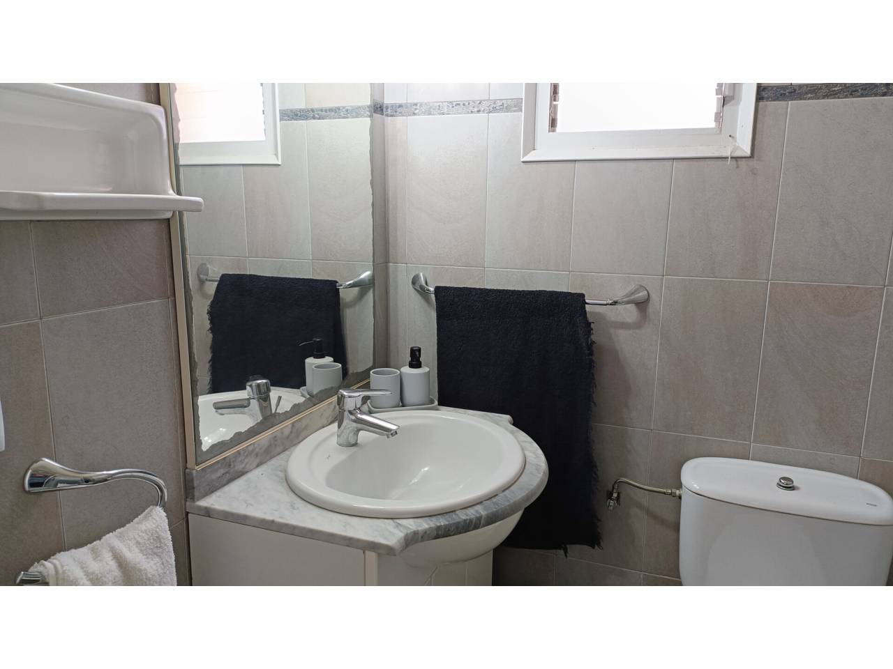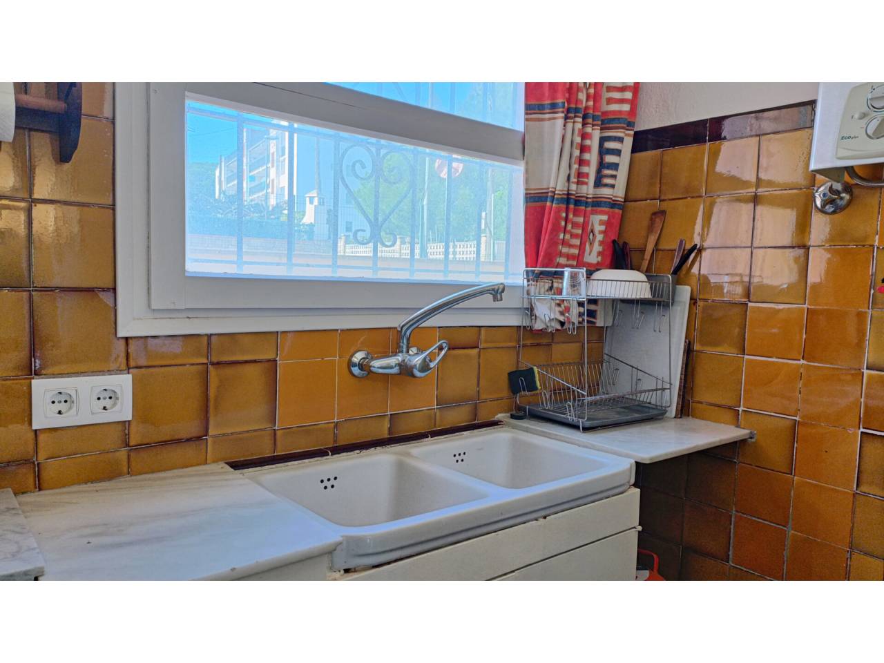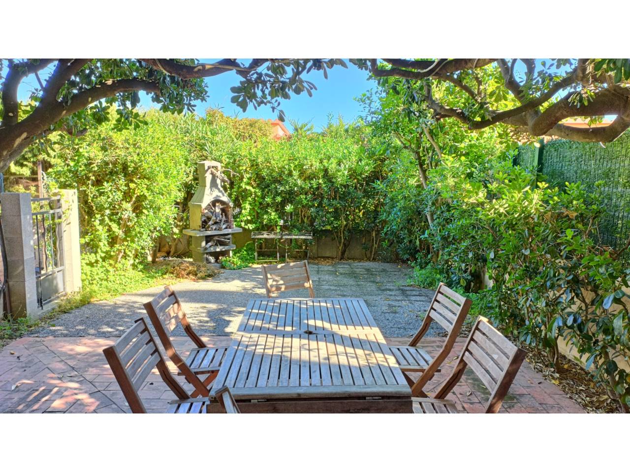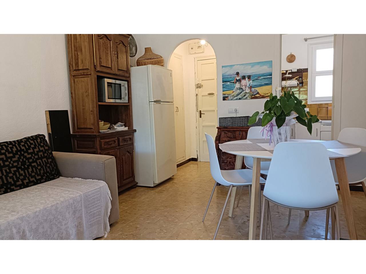 Planta baixa amb terrassa i un gran pati. És un apartament de 40m² repartits en una sala d’estar i menjador, una cuina independent, un dormitori doble amb un armari encastat i un bany amb dutxa renovat; a més a més té una terrassa de 6m² oberta a un gran pati amb zones de sol i ombra i una barbacoa d’obra.